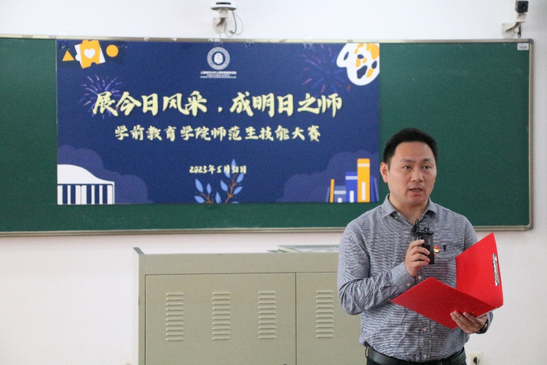 評委代表汪磊就初賽中參賽選手的表現(xiàn)作出點評。他勉勵各參賽選手繼續(xù)秉承“慈幼善育傳承創(chuàng)新”的院訓(xùn),不斷磨練專業(yè)本領(lǐng)、厚實專業(yè)素養(yǎng),為培養(yǎng)德智體美勞全面發(fā)展的中國特色社會主義合格建設(shè)者和可靠接班人貢獻(xiàn)學(xué)前力量。