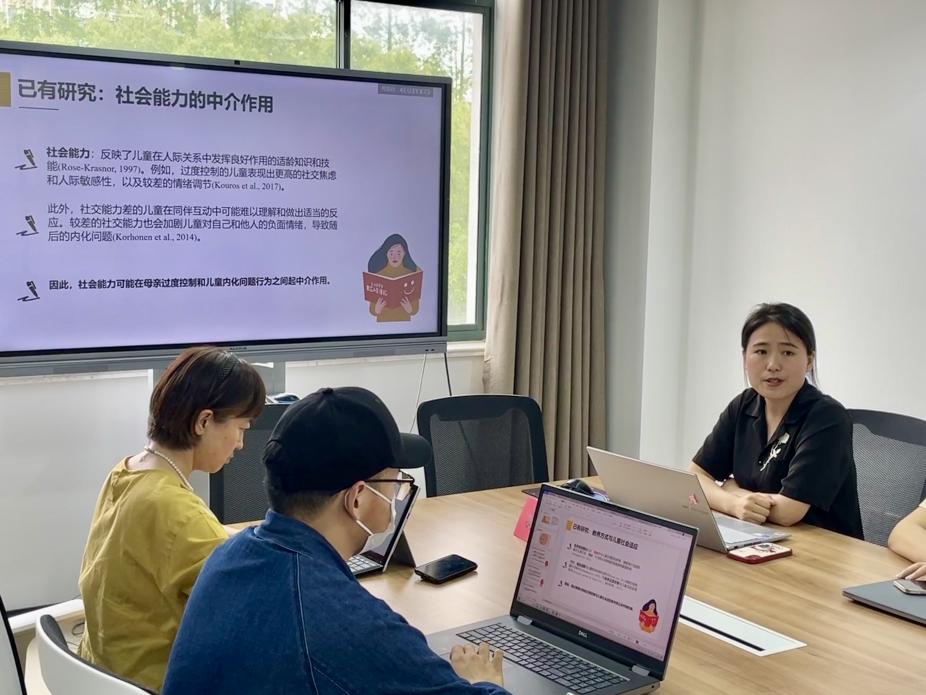 隨后,孫娟娟博士從研究問題、研究工具、研究結(jié)論、研究局限四個(gè)方面分對(duì)自己的研究進(jìn)行了具體詳細(xì)的闡述。她認(rèn)為,母親過度控制既可以直接影響兒童內(nèi)化問題行為,也可以通過降低兒童社會(huì)能力進(jìn)而間接導(dǎo)致內(nèi)化問題行為;師幼沖突調(diào)節(jié)中介路徑的前半路徑,即高沖突師幼關(guān)系,加劇了母親過度控制對(duì)兒童內(nèi)化問題行為的消極影響。