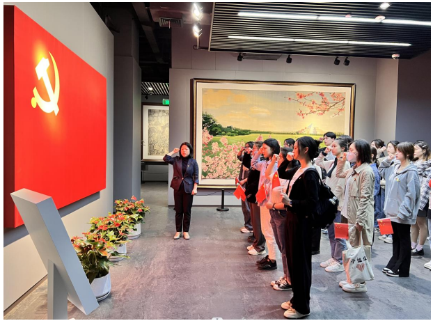 隨后所有師生進入龍華烈士紀念館內進行參觀,探尋革命烈士生命盡頭的印記,真切感受一段段壯烈激昂的崢嶸歲月,銘記共產黨人不怕犧牲的革命精神。來到了入黨宣誓展廳,由黨委書記唐潔帶領新黨員在黨旗下進行了莊嚴的宣誓儀式。她寄語新黨員們,要學習革命先烈們對理想信念的執(zhí)著追求,牢記黨全心全意為人民服務的宗旨,牢記今天的誓言,不忘初心,砥礪前行。