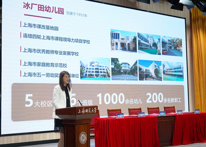 此后,優(yōu)秀實(shí)踐基地代表、浦東新區(qū)冰廠田幼兒園園長(zhǎng)汪培分享了冰廠田幼兒園作為教育實(shí)踐基地的豐富經(jīng)驗(yàn)和深刻思考,詳述了在浸潤(rùn)培養(yǎng)、銜接就業(yè)等方面幼兒園的長(zhǎng)期積累和努力,展示了與學(xué)院長(zhǎng)期合作的成果。