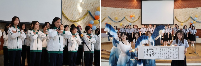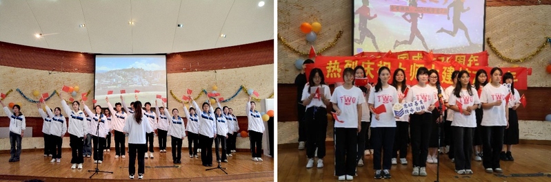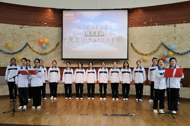 2024級(jí)5班的《我愛(ài)你中國(guó)》、2024級(jí)6班融入豐富的中國(guó)元素呈現(xiàn)的《光亮》以及2023級(jí)6班帶來(lái)的耳熟能詳?shù)摹睹魈鞎?huì)更好》,深情地傳達(dá)了中華兒女對(duì)祖國(guó)的深厚眷戀和熱愛(ài)。
