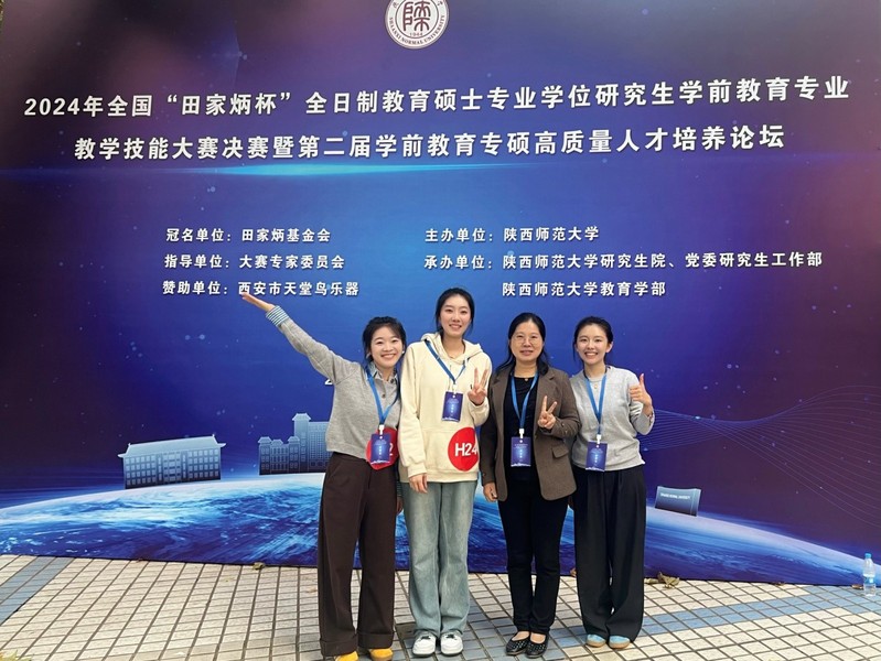 11月8日-10日,2024年全國(guó)“田家炳杯”全日制教育碩士專業(yè)學(xué)位研究生學(xué)前教育專業(yè)教學(xué)技能大賽決賽在陜西師范大學(xué)隆重舉行。我院23級(jí)學(xué)前教育專業(yè)碩士研究生沈翊寧(指導(dǎo)教師丁柯雅)、林書函(指導(dǎo)教師王麗新)和李孜(指導(dǎo)教師方鈞君)在初賽中脫穎而出,參加此次全國(guó)總決賽。