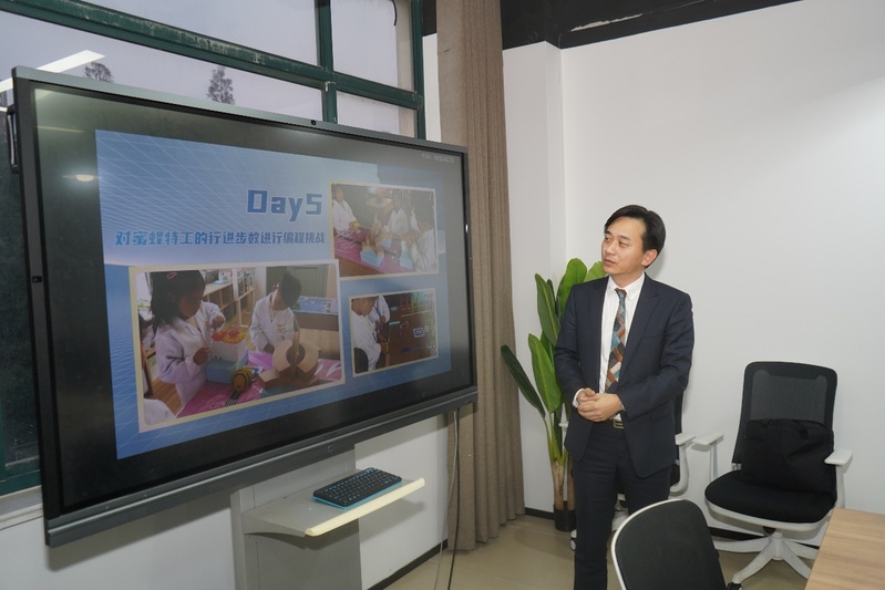 學院派駐幼兒園的科研副園長黃立安副教授匯報掛職的一年工作及在幼兒園實施開展的STEM項目情況。派駐期間,黃立安副教授在附屬幼兒園積極開展項目交流合作與研究,并在環(huán)境創(chuàng)設、教師藝術教學培訓上進行指導,協(xié)助附屬幼兒園兩個園部完成了高質(zhì)量驗收工作。