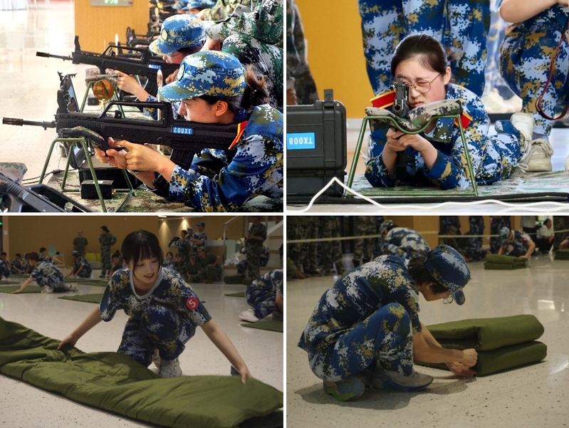 趣味競(jìng)賽添活力,熱血青春展英姿。射擊比賽場(chǎng)上,學(xué)前學(xué)子屏息凝神,留下颯爽英姿。疊被子比賽中,他們?cè)谝徽垡化B中修養(yǎng)心性、磨煉意志。