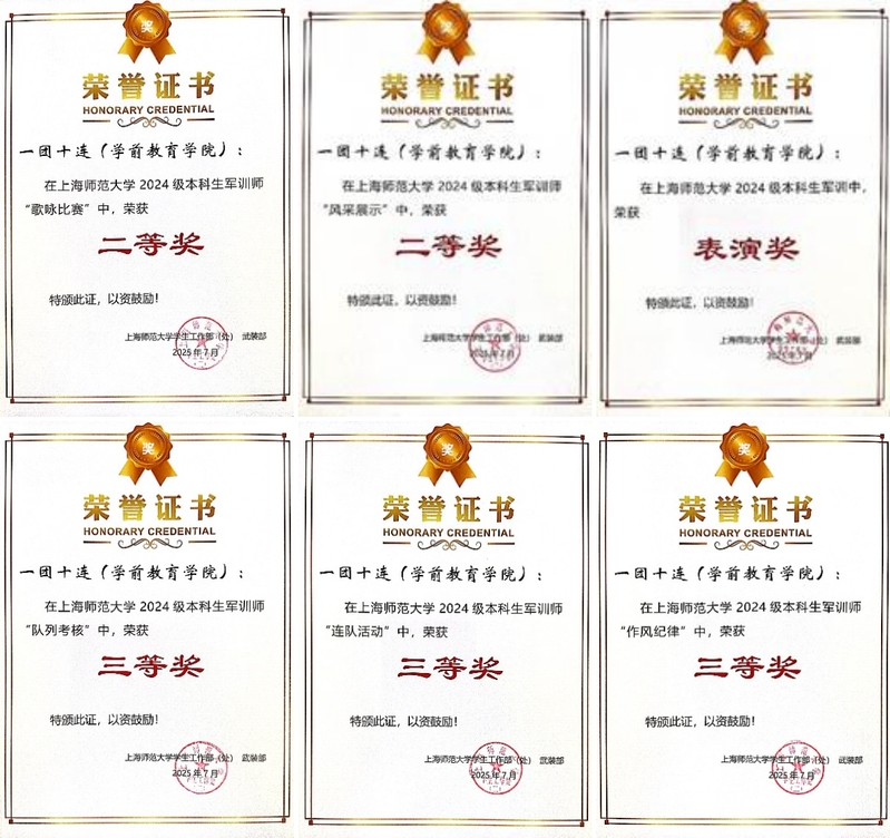在教官的科學(xué)施教、指導(dǎo)員的悉心陪伴以及全體參訓(xùn)同學(xué)的共同努力下,學(xué)院2024級(jí)本科生軍訓(xùn)取得豐碩成果,榮獲2025年學(xué)生軍訓(xùn)“優(yōu)秀連隊(duì)”(沙場(chǎng)英雄)稱號(hào),并獲風(fēng)采展示二等獎(jiǎng)、歌詠比賽二等獎(jiǎng)、作風(fēng)紀(jì)律三等獎(jiǎng)、隊(duì)列考核三等獎(jiǎng)、連隊(duì)活動(dòng)三等獎(jiǎng)、軍訓(xùn)表演獎(jiǎng)等6項(xiàng)單項(xiàng)獎(jiǎng),正指導(dǎo)員徐一航獲“優(yōu)秀指導(dǎo)員”稱號(hào)。
