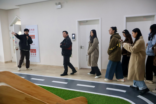 延吉幼兒園作為楊浦區(qū)學(xué)前教育示范園,以“生活化教育、游戲化成長”為辦園理念,在幼兒一日活動(dòng)組織、特色課程開發(fā)、家園共育等方面積累了豐富經(jīng)驗(yàn)。在沉浸式觀摩環(huán)節(jié),同學(xué)們進(jìn)入庭院沙水池、托班教室、食育室、安全體驗(yàn)室等教學(xué)活動(dòng)現(xiàn)場,近距離感受幼兒園教育的真實(shí)氛圍。