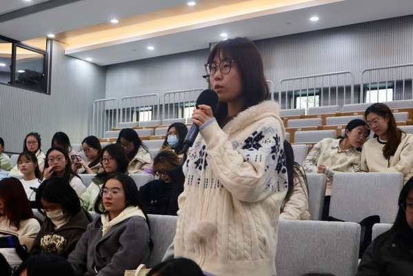 王曉燕以《讓最初的選擇成為最難忘的體驗(yàn)》為題開展了主題講座,她從自己職業(yè)生涯的三次選擇開場,分享了從幼兒教師逐步成長為幼兒園園長的教學(xué)經(jīng)驗(yàn),勉勵(lì)同學(xué)們堅(jiān)定幼教初心,扎根專業(yè)基礎(chǔ),錘煉過硬本領(lǐng)。分享結(jié)束后,同學(xué)們踴躍提問,就求職就業(yè)、男幼師的職業(yè)發(fā)展以及師幼溝通等方面向王曉燕請教學(xué)習(xí)。